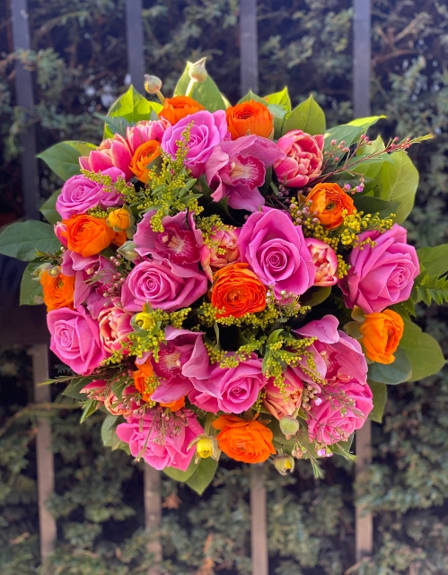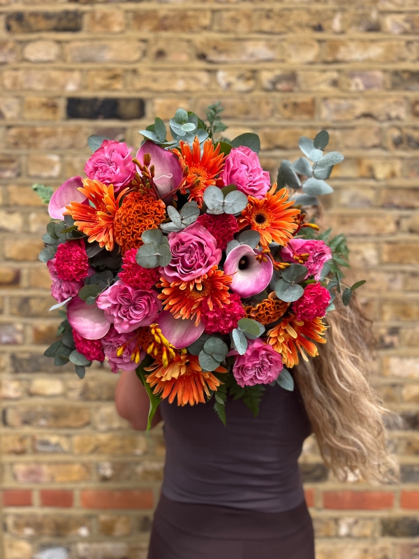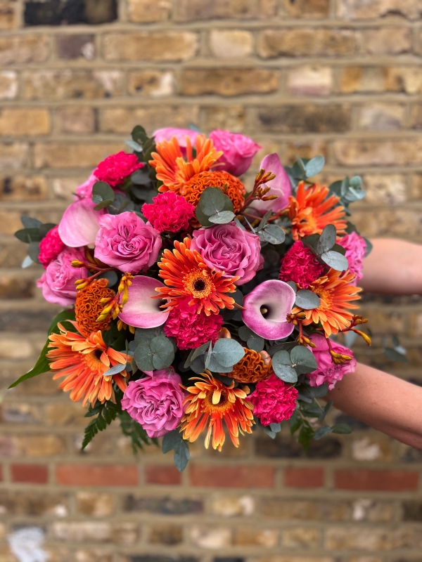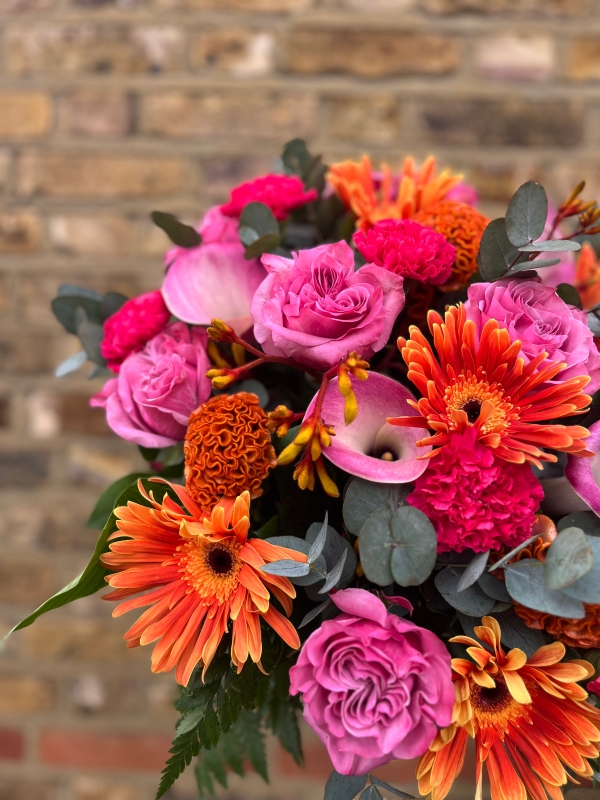 Bursting with energy and warmth, our Vibrant Coral Bouquet is a joyful medley of zesty oranges and rich pink hues — a celebration of colour that instantly brightens any space. Designed to bring a sense of sunshine and cheer, this bold yet elegant arrangement adds a lively touch to every occasion.